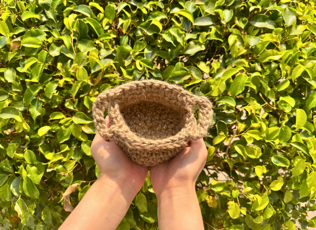 The project WeaveLand transforms discarded coconut husks into plastic-free materials by knitting and crocheting them into reusable items. These are designed for everyday carrying and light packaging applications, such as bags, pouches and baskets used for fruits and market goods.